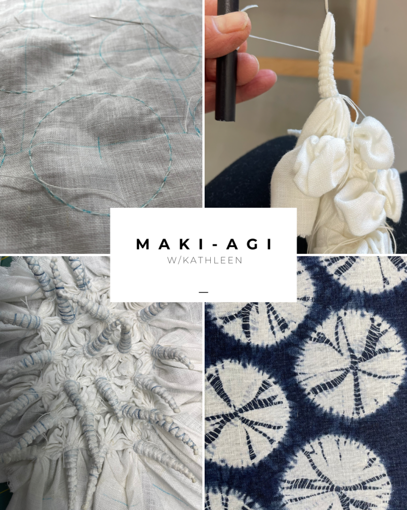 Kathleen is passionate about process. For her that looks like careful stitching, choosing just the right fabric, understanding her indigo dye bath, and intentionally creating beautiful shibori textiles. Her curiosity has taken her all the way to Japan to study with the masters, and we’re lucky to have her with us here at Fiber College.